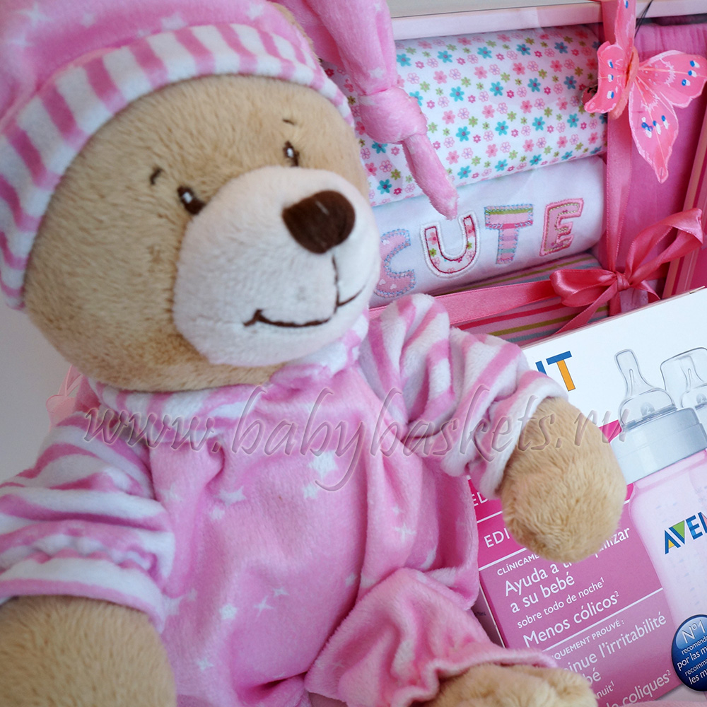 Очаровательная подарочная корзина для новорожденной девочки «Привет, это Я!» это необходимые для малышки вещи и аксессуары:
