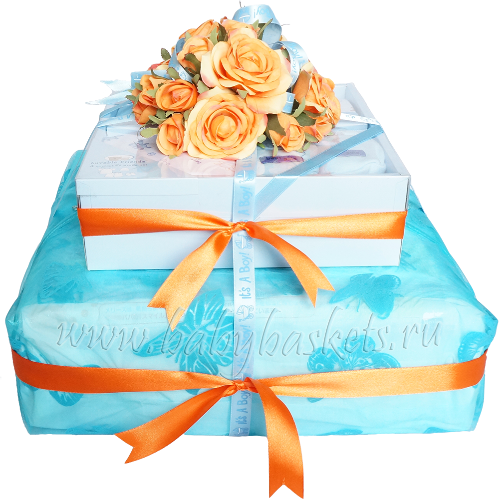 Необыкновенный торт из памперсов для новорожденного мальчика «На Рождение Мальчика» состоит из самых качественных товаров для новорожденных: